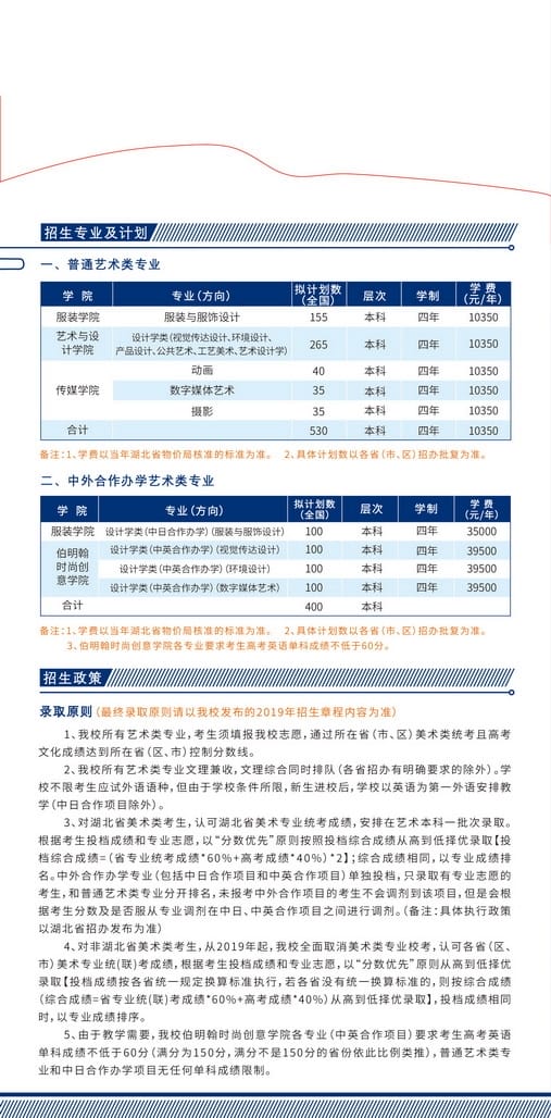 武汉纺织大学2019年美术类专业招生简章